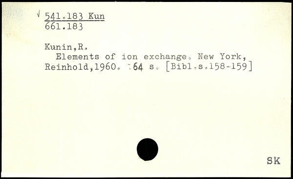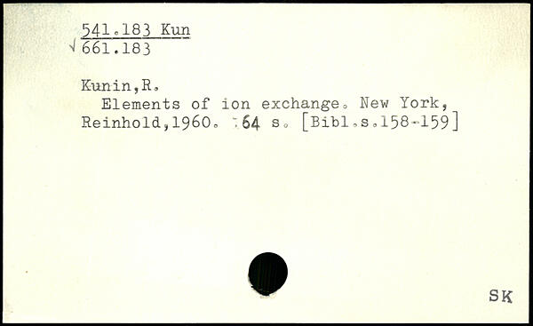 Elements of ion exchange, New York, Reinhold,1960. ~ 64 sD