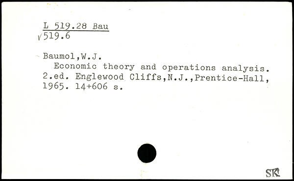 ' Baumol,V.J. Economie theory and operations analysis. 2,ed.