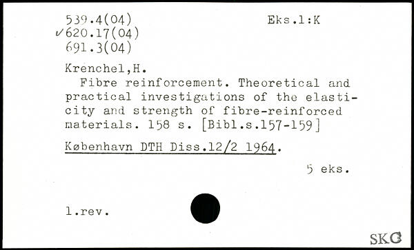 Fibre reinforcement. Theoretical and practical investigations of the elasticity and strength of fibre-reinforced materials.