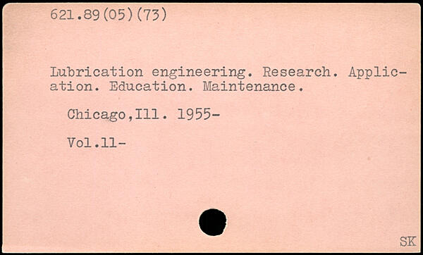 Lubrication engineering. Research. Application. Education. Maintenance. Chicago,111. 1955- Vol.ll-