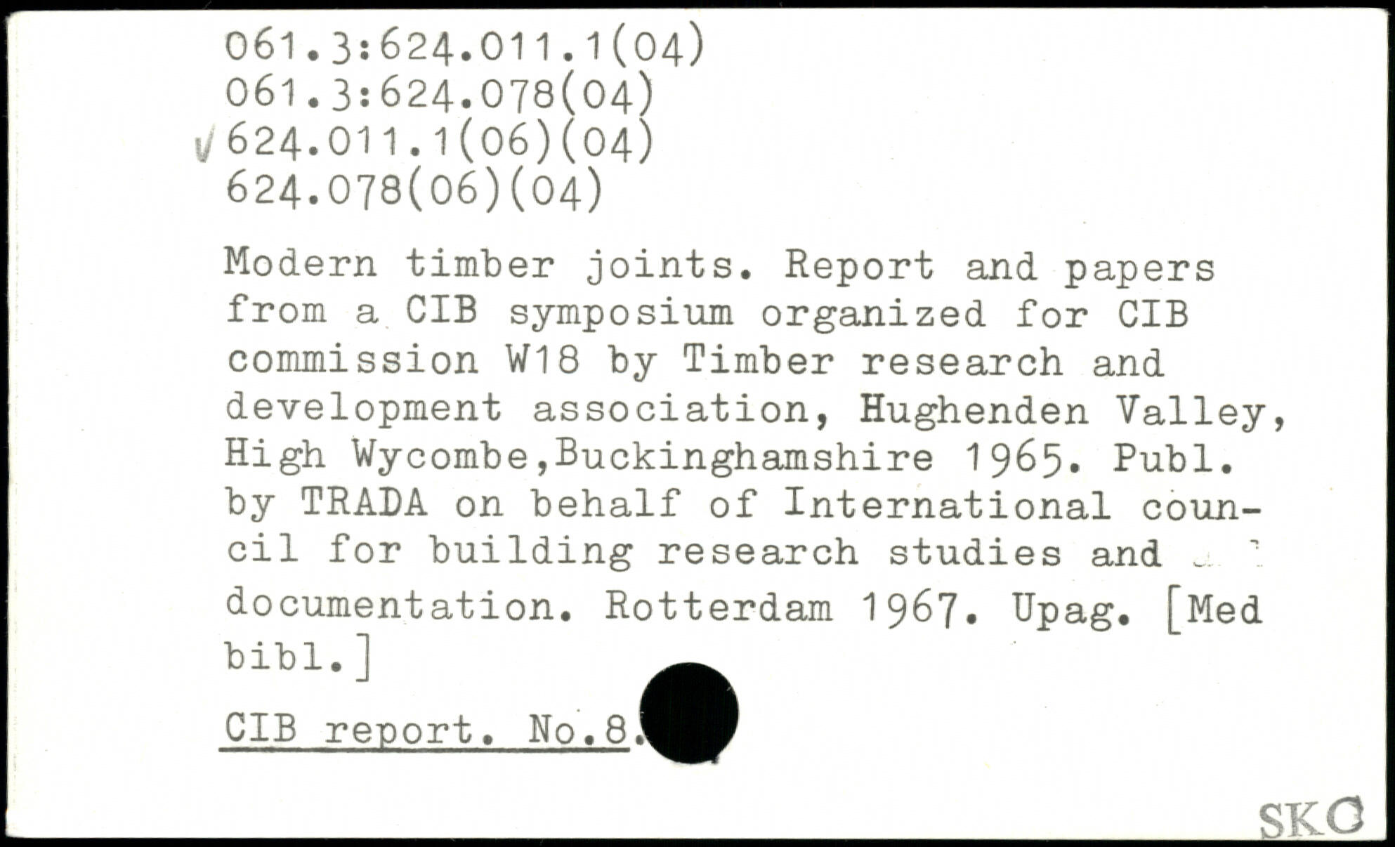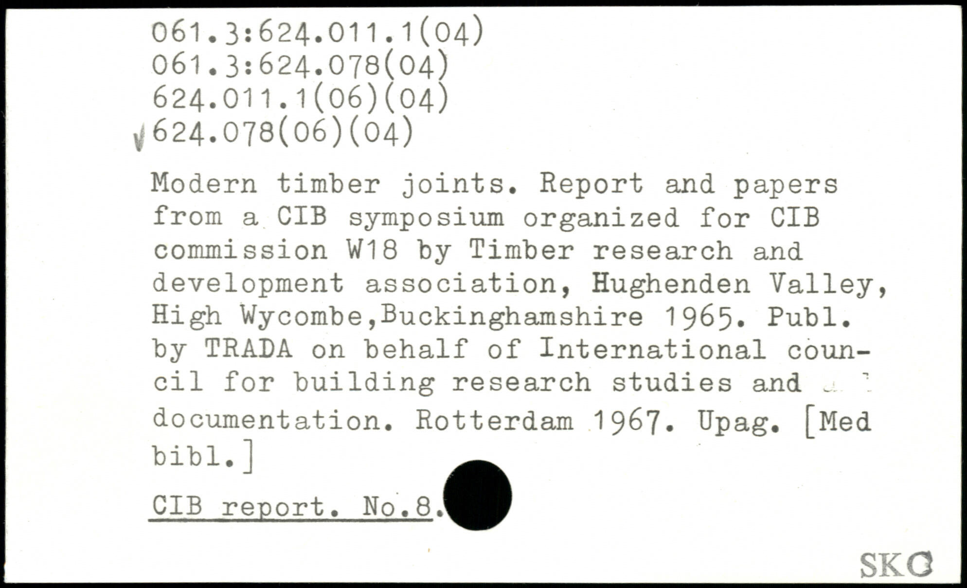 Modern timber joints. Report and papers from a CIB symposium organized for CIB commission W18 by Timber research and development association, Hughenden Valley, High Wycombe,Buckinghamshire 1965.