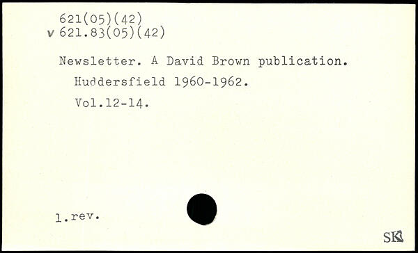 Newsletter. A David Brown publication. Huddersfield 1960-1962. Vol.I2-I4.