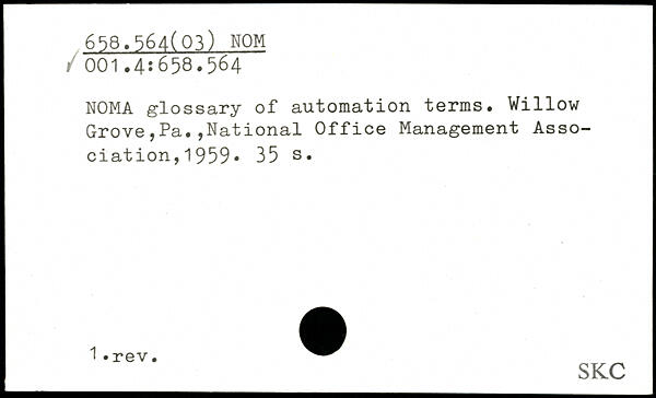 NOMA glossary of automation terms. Willow Grove,Pa.,National Office Management Associât ion,1959.