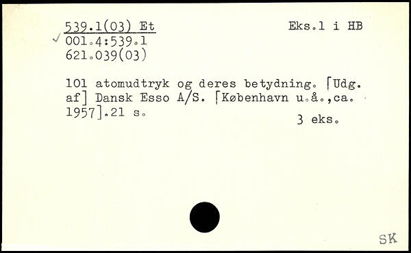 101 atomudtryk og deres be tydningo [üdg. af] Dansk Esso A/S. [København u,åo,ca.