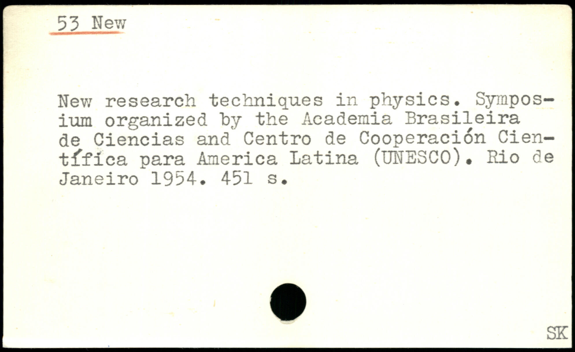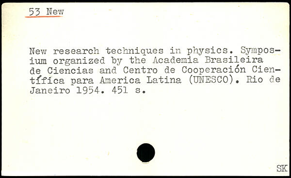 Hew research techniques in physics. Symposium organized by the Academia Brasileira de Ciencias and Centro de Cooperacion Cien-t^fica para America Latina (UNESCO). Rio de Janeiro 1954.