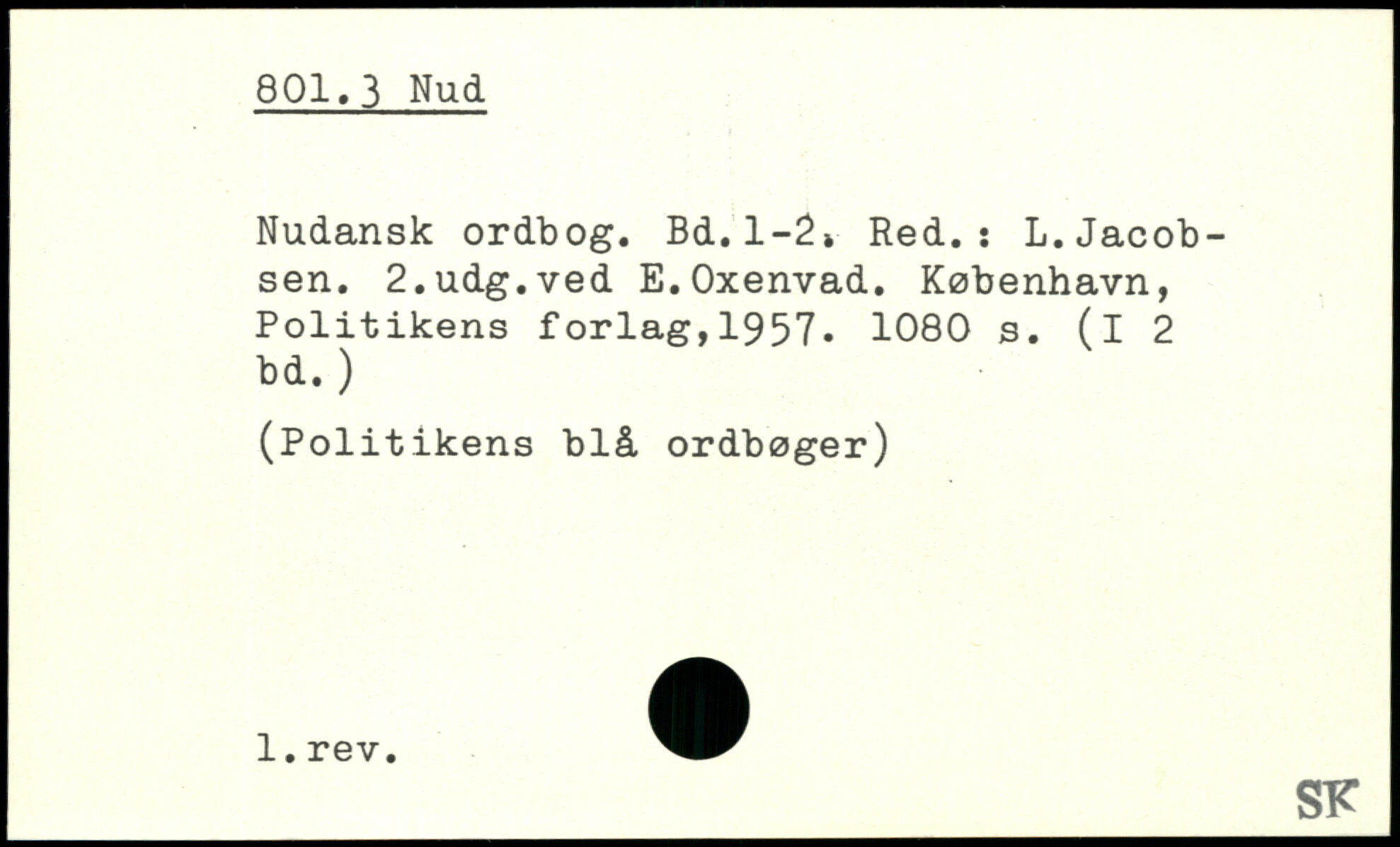 Nudansk ordbog. Bd. 1-2, Red.: L.Jacobsen.