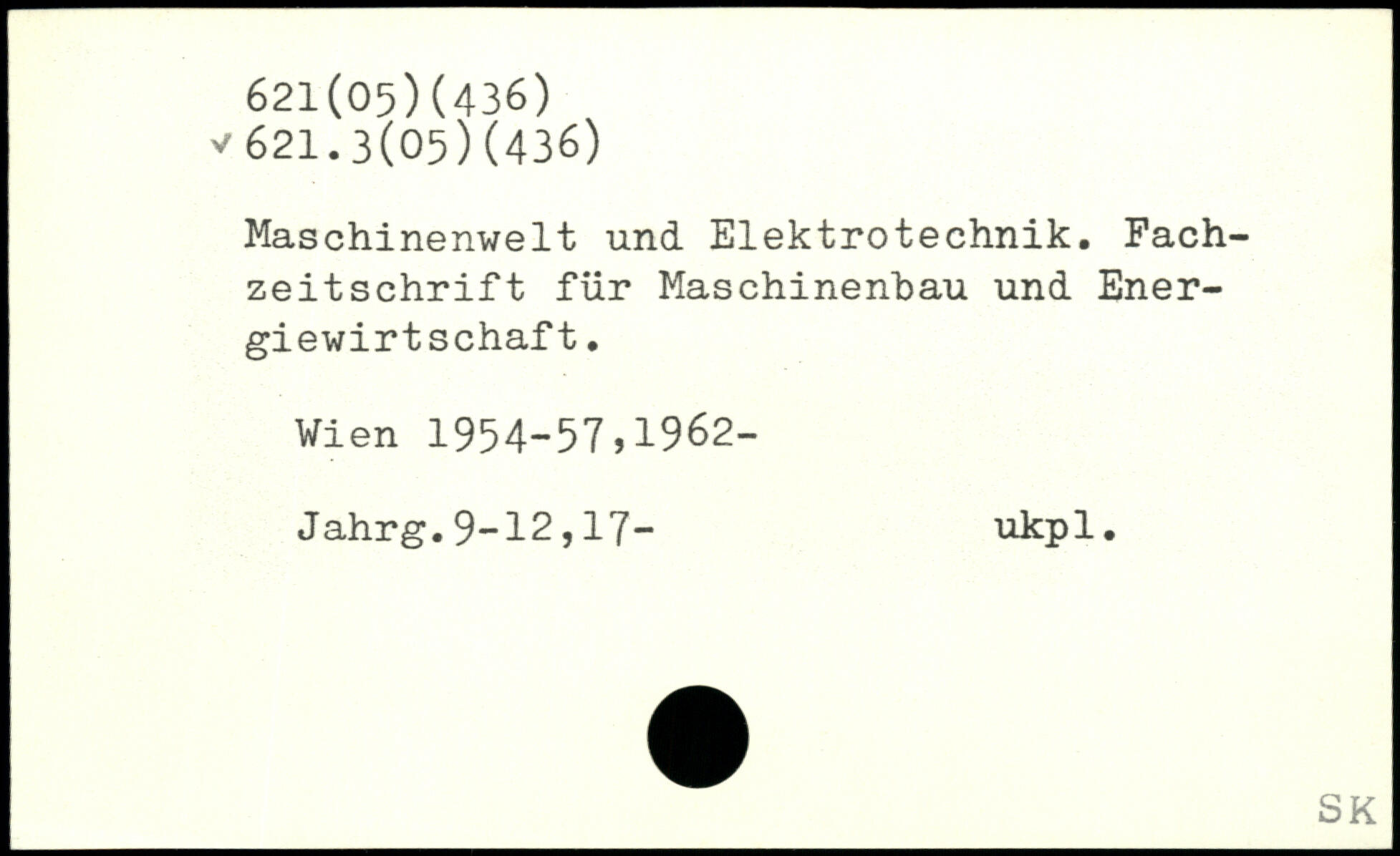 Maschinenwelt und Elektrotechnik. Fachzeitschrift für Maschinenbau und Energiewirtschaft. Vien 1954-57,1962- Jahrg.9-12,17- ukpl.