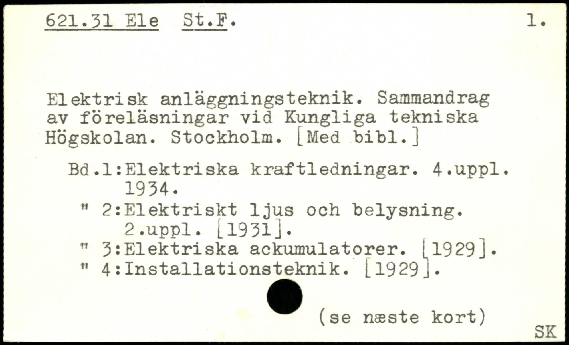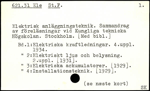 Elektrisk anläggningsteknik. Sammandrag av föreläsningar vid Kungliga tekniska Högskolan. Stockholm. [Med bibi.]