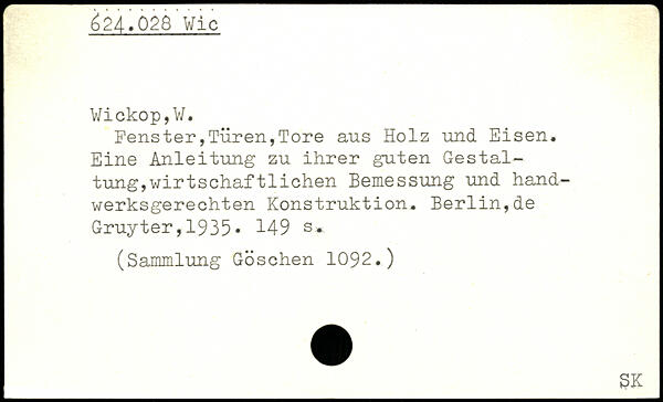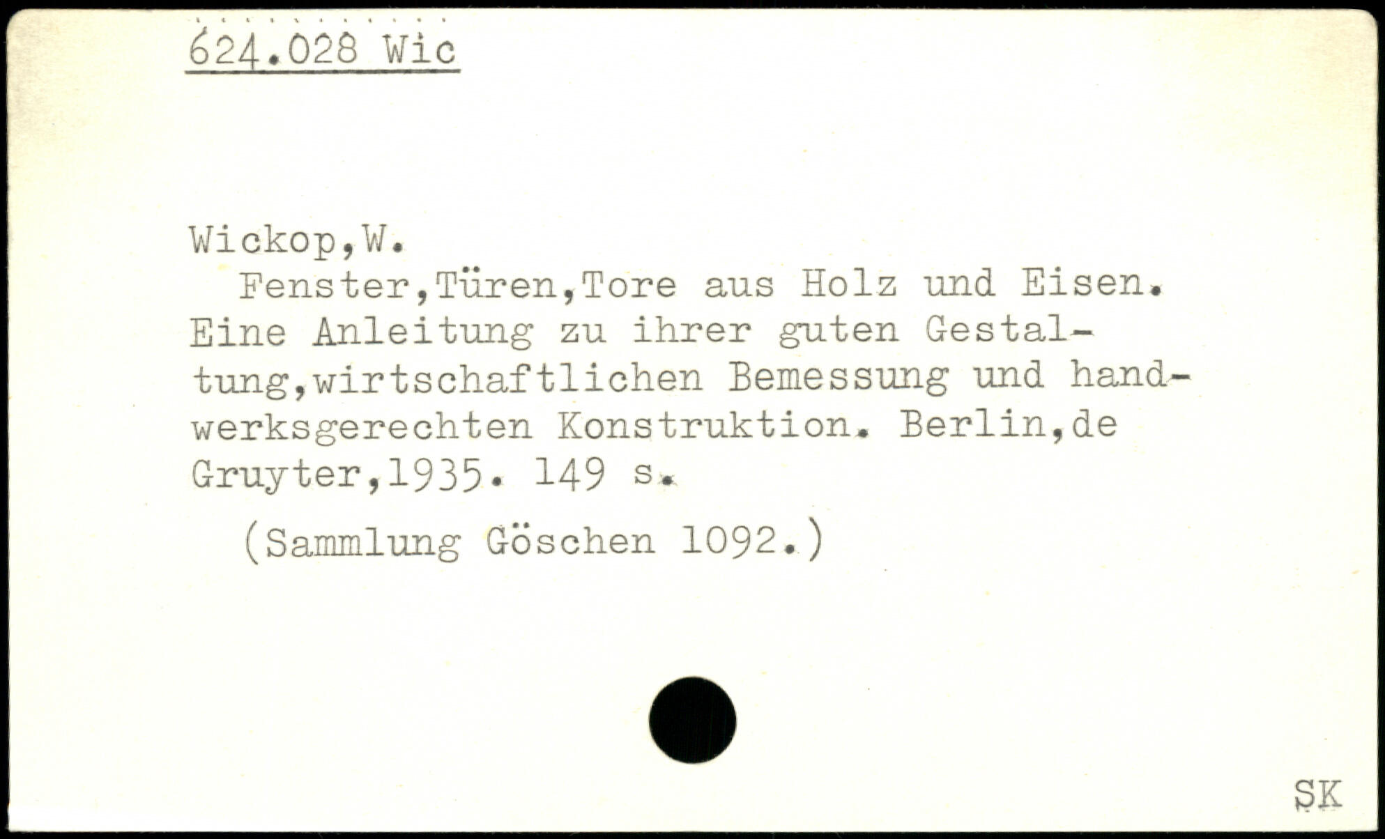 Fenster,Türen,Tore aus Holz und Eisen, Eine Anleitung zu ihrer guten Gestaltung, wirtschaf tlichen Bemessung und handwerksgerechten Konstruktion. Berlin,de Gruyter,1935.