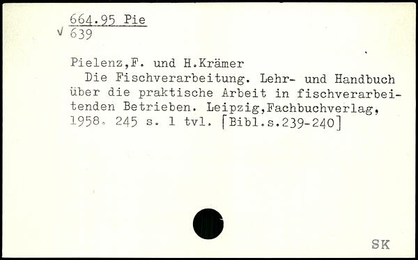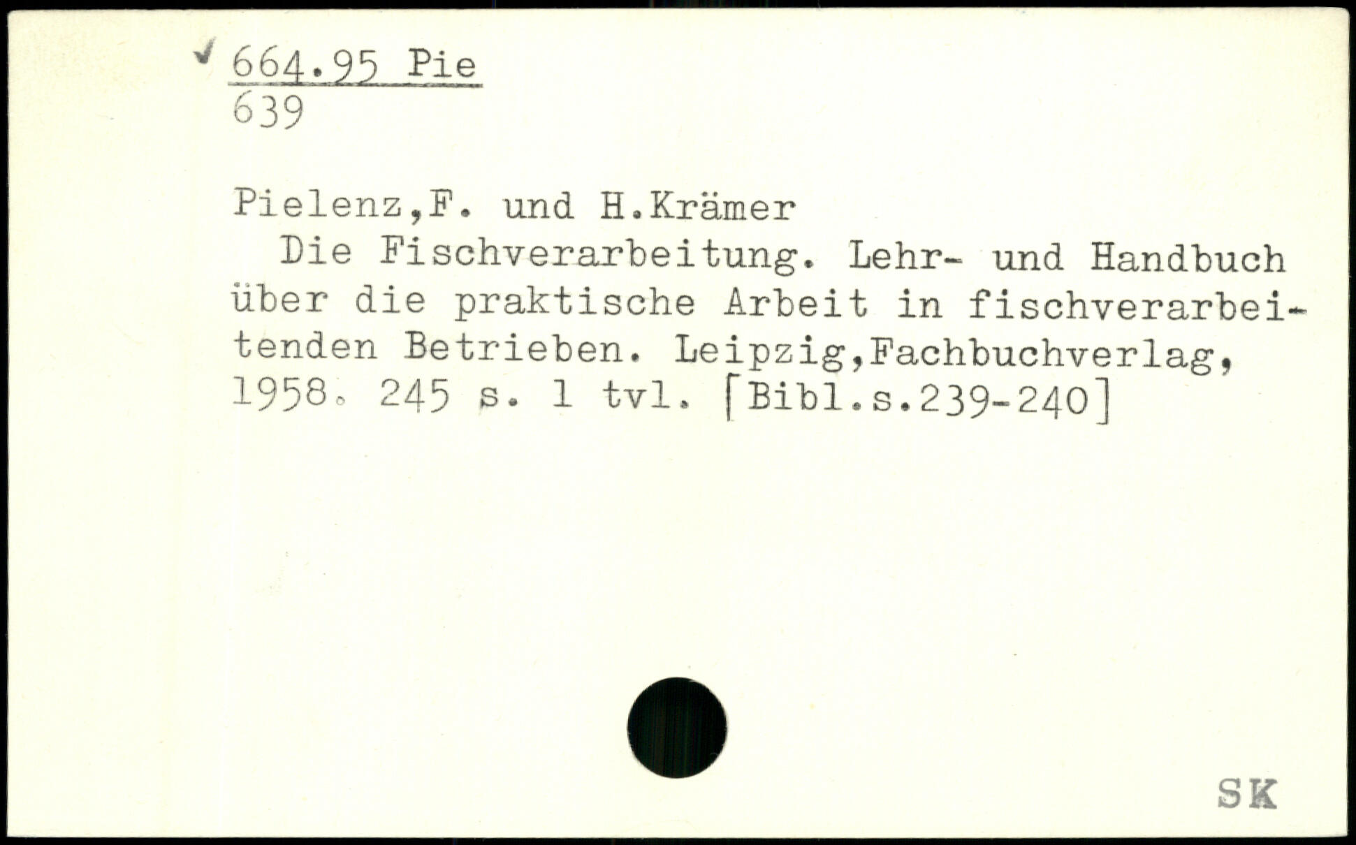 Die Fischverarbeitung. Lehr- und Handbuch über die praktische Arbeit in fischverarbeitenden Betrieben. Leipzig,Fachbuchverlag. 1958