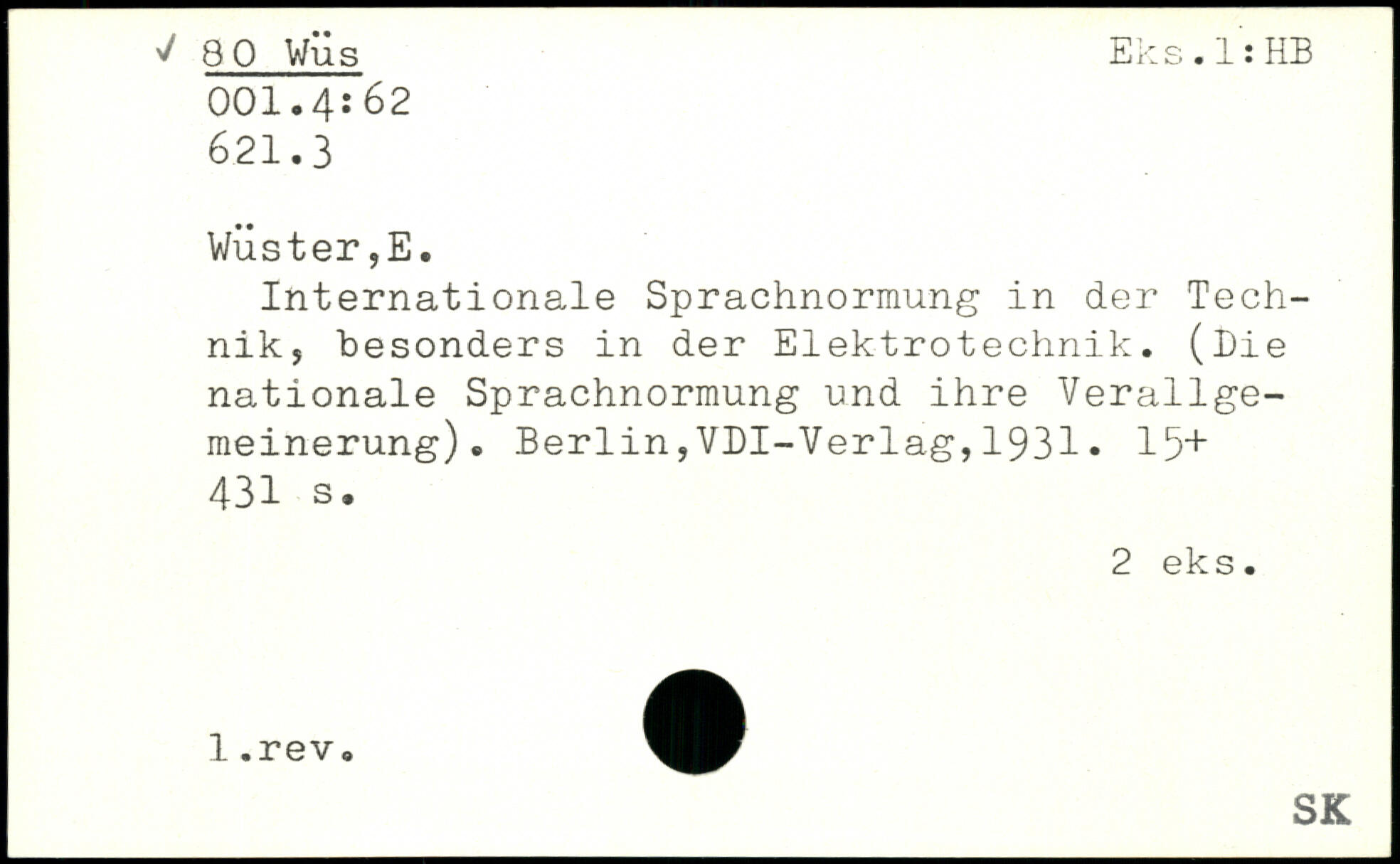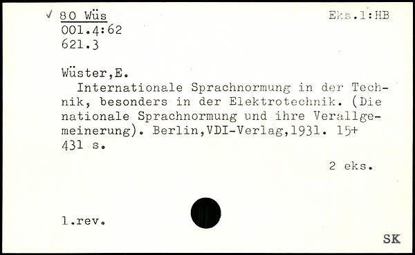 Internationale Sprachnormung in der Technik, besonders in der Elektrotechnik, (hie nationale Sprachnormung und ihre Verallgemeinerung).
