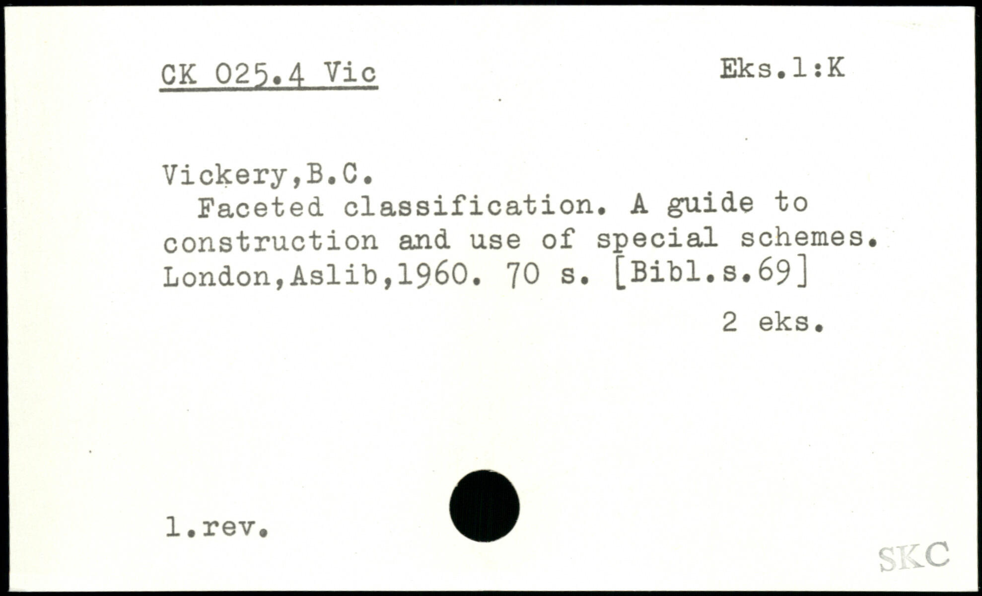 Faceted classification. A guide to construction and use of special schemes.