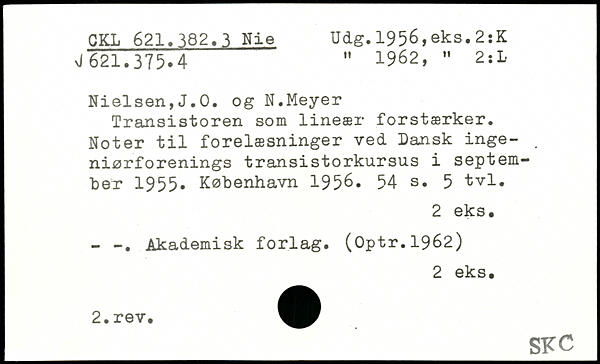 Transistoren som lineær forstærker. Noter til forelæsninger ved Dansk inge-. niorforenings transistorkursus i september 1955.