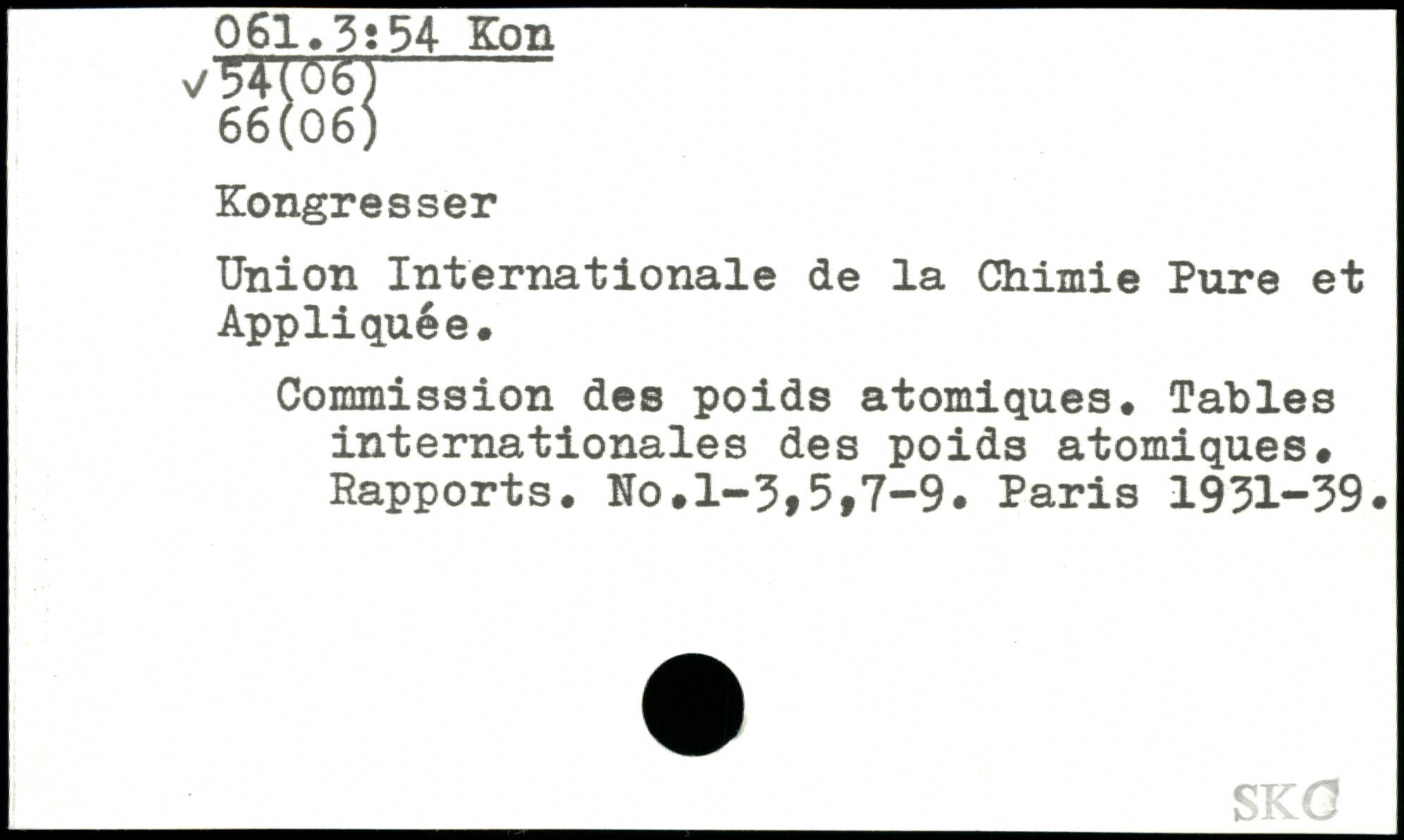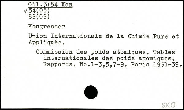 Union Internationale de la Chimie Pure et Appliquée. Commission des poids atomiques. Tables internationales des poids atomiques. Rapports. No.l-3f5f7-9#
