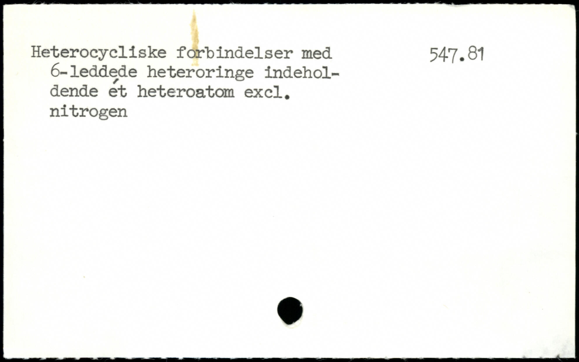Heterocycliske forbindelser med 547.81 6-leddede heteroringe indeholdende et heteroatom excl. nitrogen