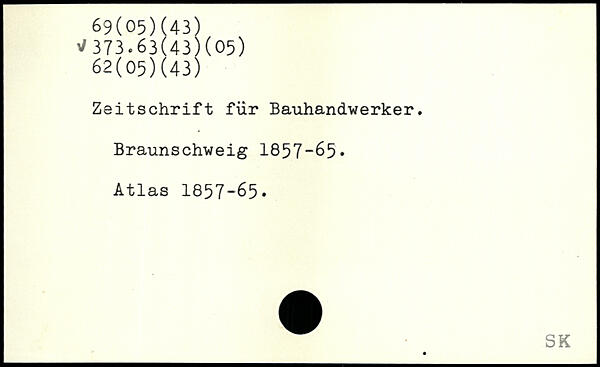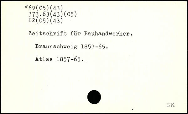 Zeitschrift für Bauhandwerker. Braunschweig 1857-65. Atlas 1857-65.