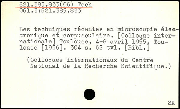 Les techniques récentes en microscopie électronique et corpusculaire.