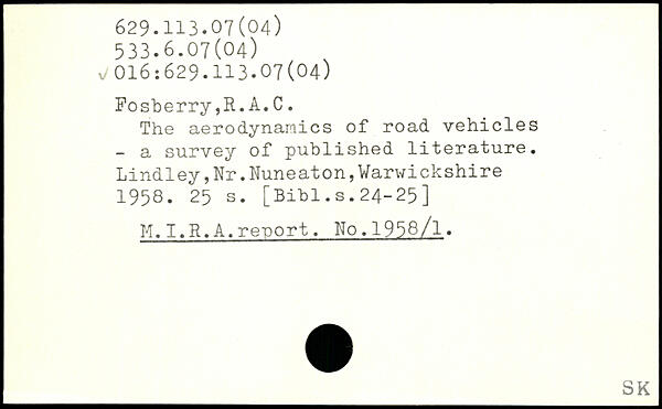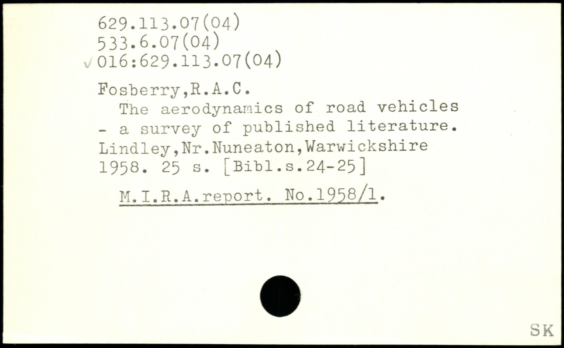 The aerodynamics of road vehicles - a survey of published literature. Lindley,Nr.Nuneaton,Warwickshire 1958.