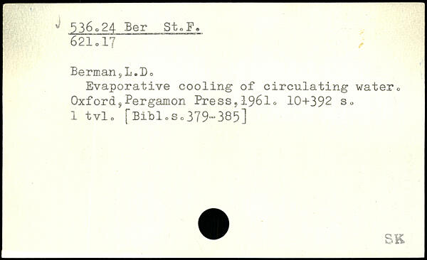 Evaporative cooling of circulating water. OxfordjPergamon Press,1961