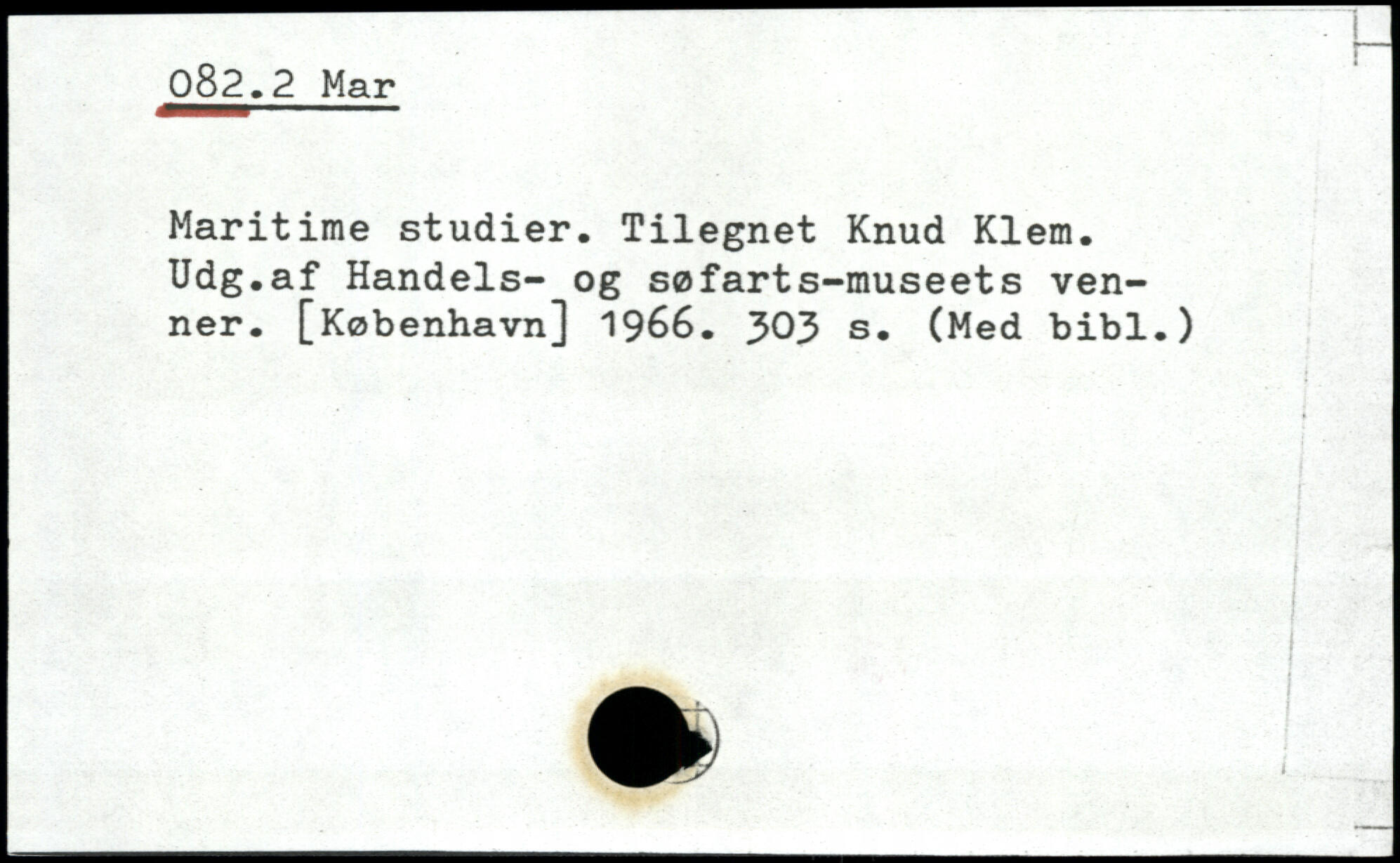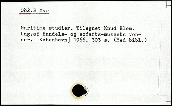 Maritime studier. Tilegnet Knud Klem. Udg.af Handels- og søfarts-museets venner.