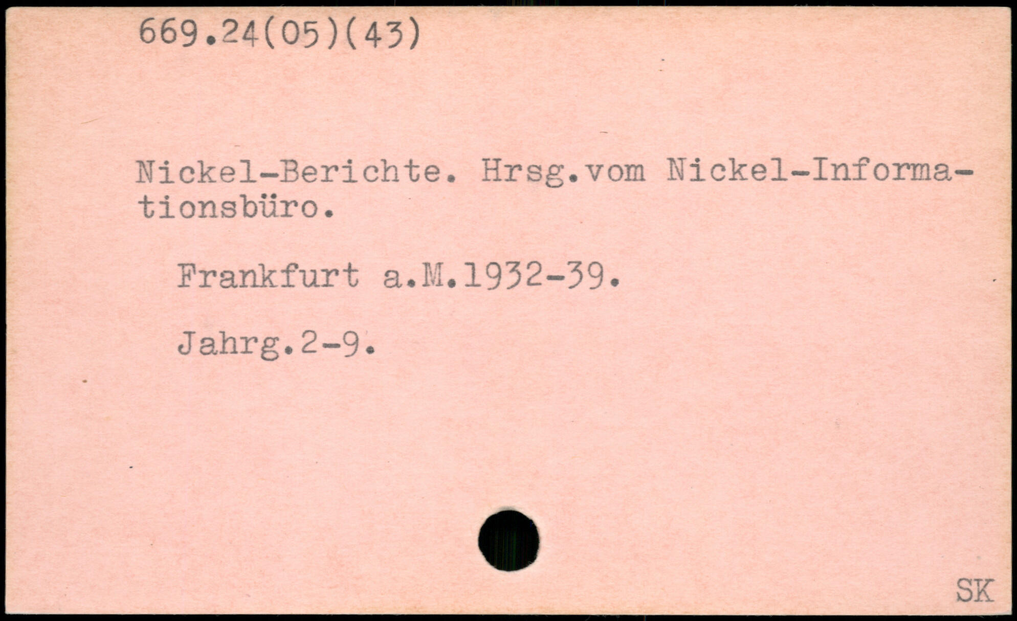 Nickel-Berichte. Hrsg.vom Nickel-Informationsbüro. Frankfurt a.M.1932-39. Jahrg.2-9.
