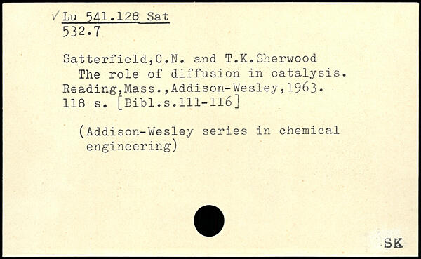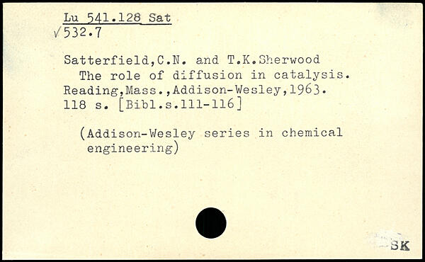 Satterfield,C.N. and T.K.Sherwood The role of diffusion in catalysis.