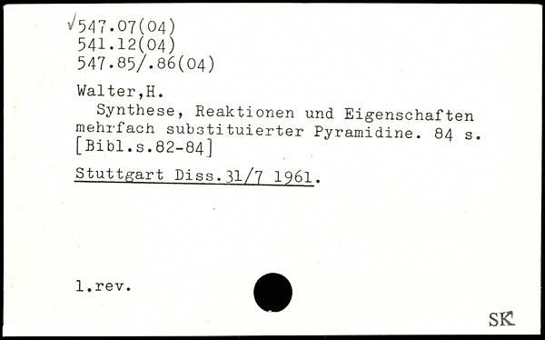 Synthese, Reaktionen und Eigenschaften mehrfach substituierter Pyramidine.
