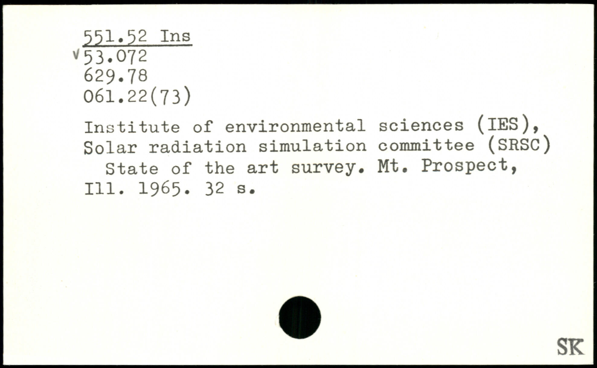 Institute of environmental sciences (lES), Solar radiation simulation committee (SRSC) State of the art survey. Mt. Prospect, 111. 1965.