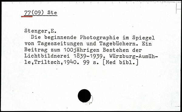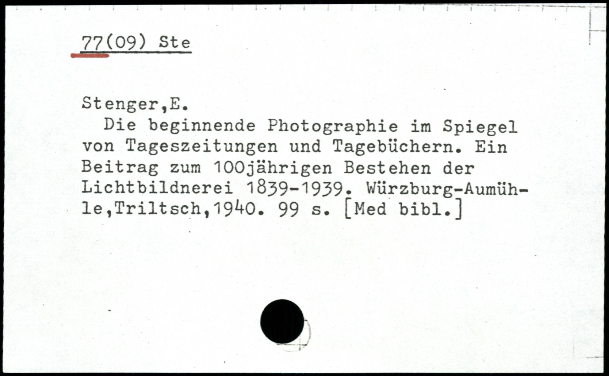 Die beginnende Photographie im Spiegel von Tageszeitungen und Tagebüchern. Ein Beitrag zum 100jährigen Bestehen der Lichtbildnerei 1839-1939, Würzburg-Aumühle ,Triltsch,19^0.