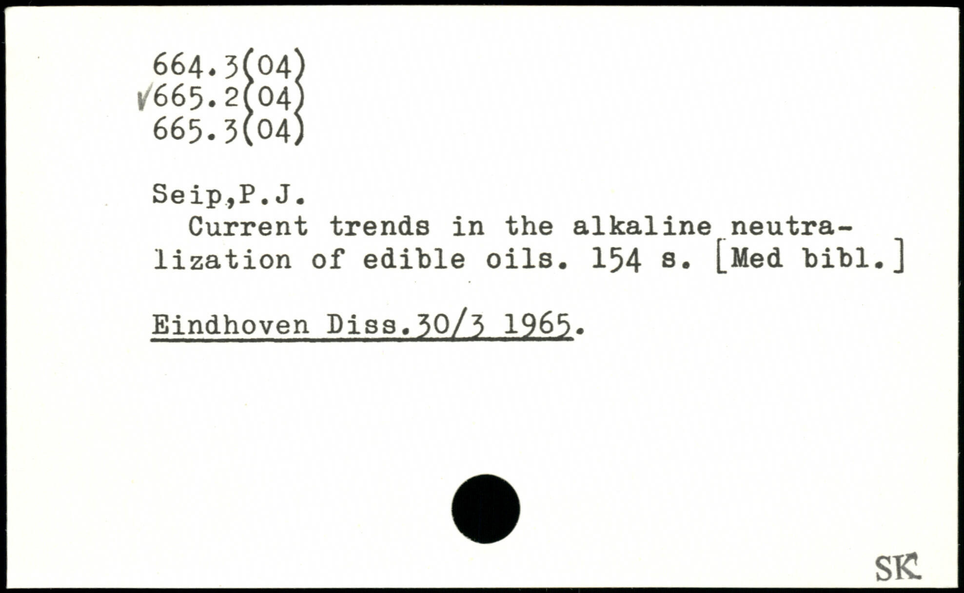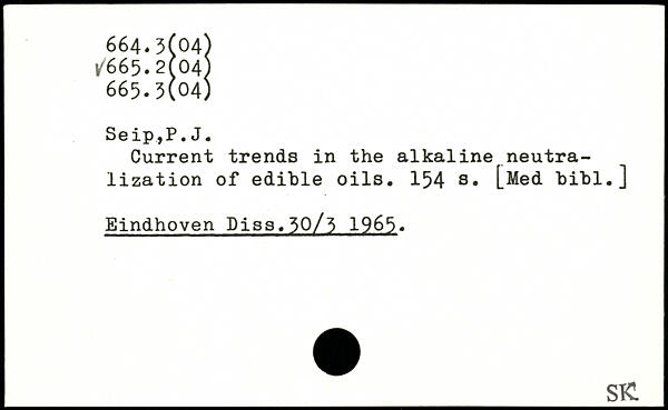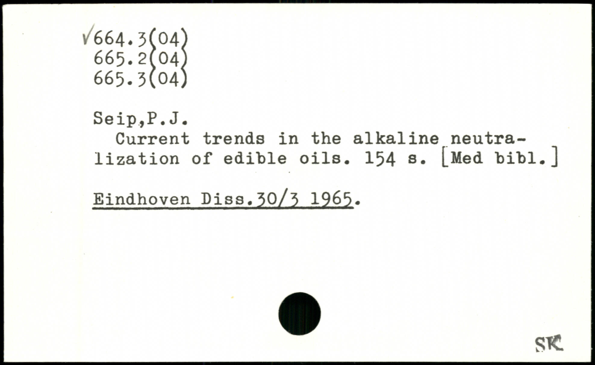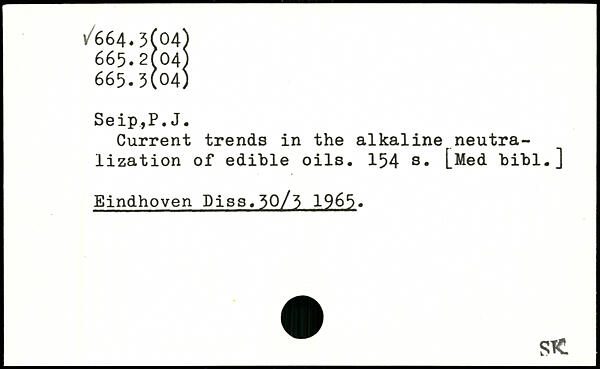 Current trends in the alkaline neutralization of edible oils. 154 8. [Med bibl.] Eindhoven Diss.50/3 1965.