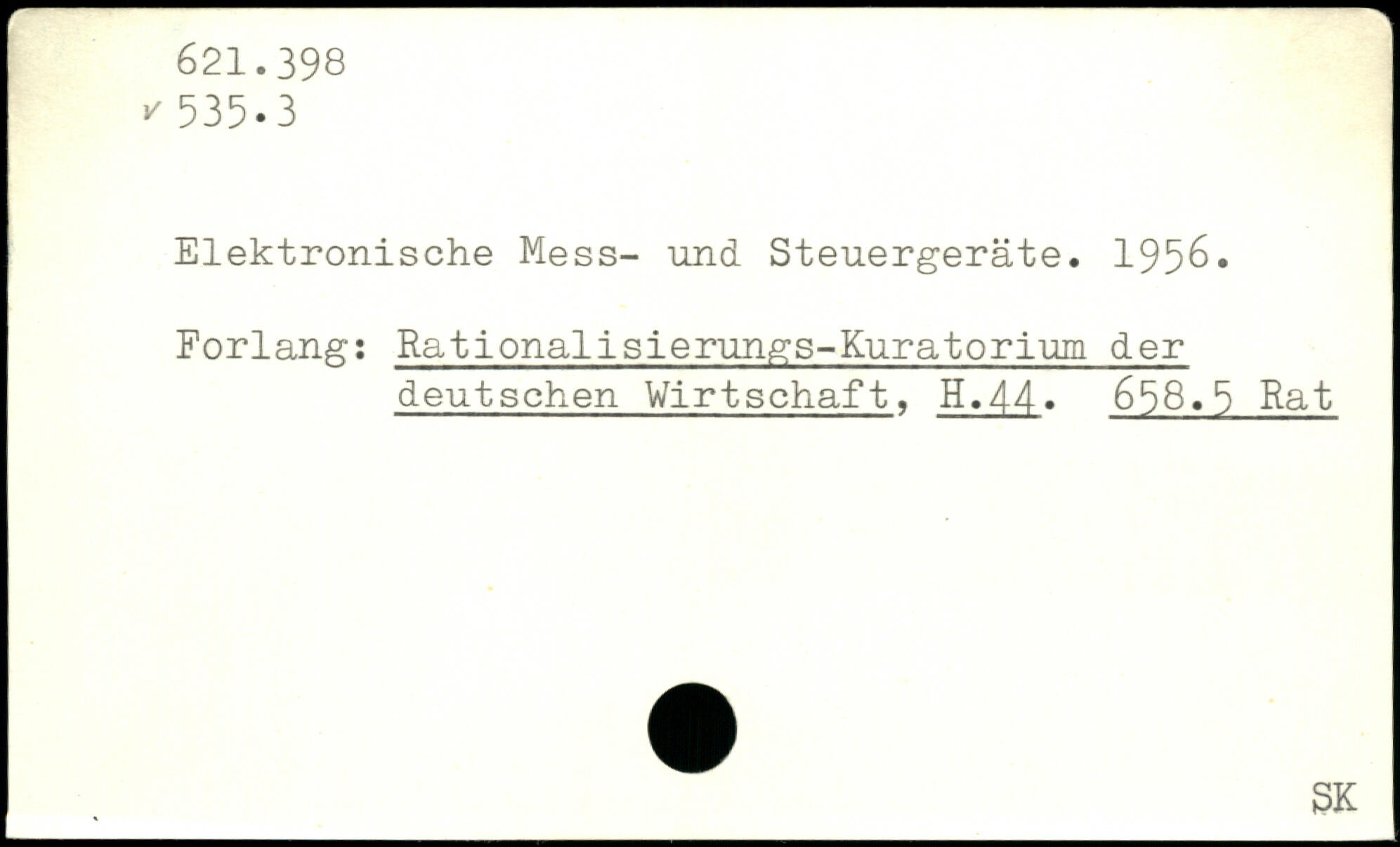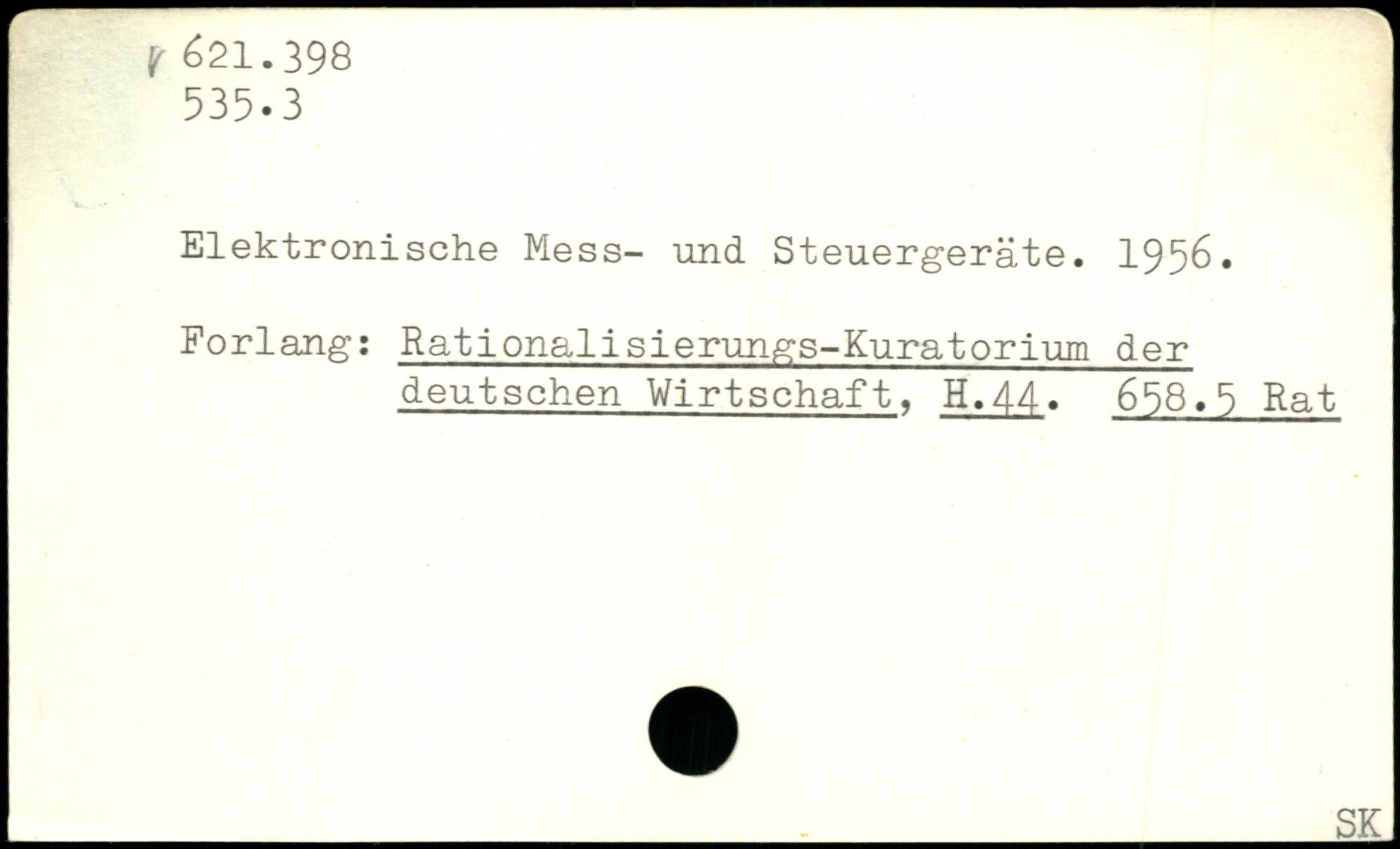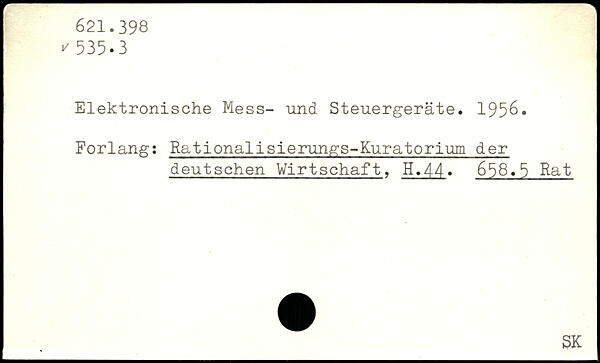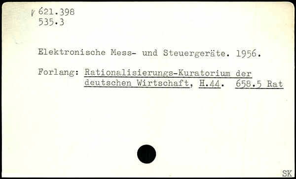 Elektronische Mess- und Steuergeräte. 1956. Forlang: Rationalisierungs-Kuratorium der deutschen Wirtschaft. H.44. 658.5 Rat