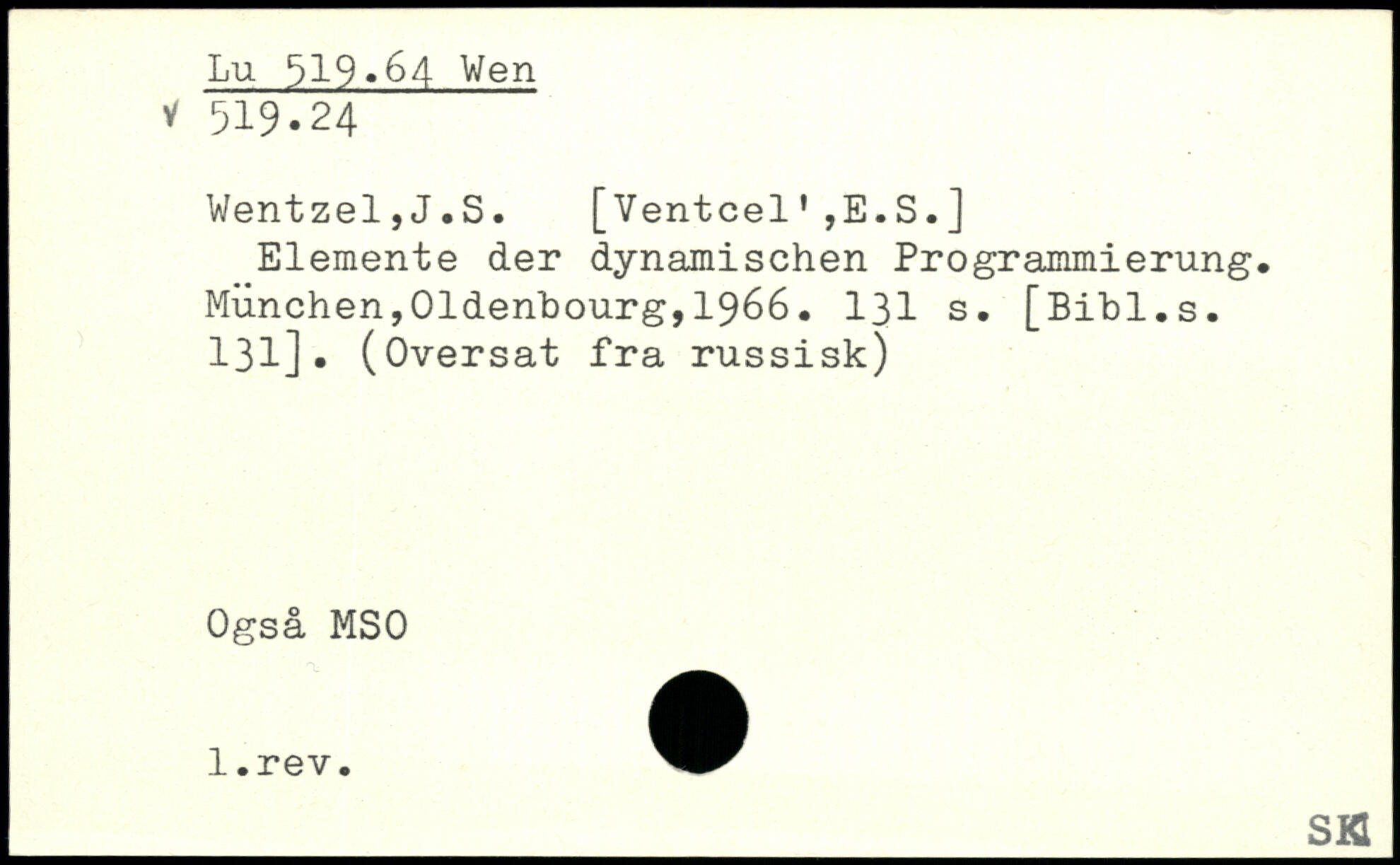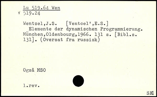 Wentzel, J.S. [Ventcel,,E.S.] Elemente der dynamischen Programmierung.