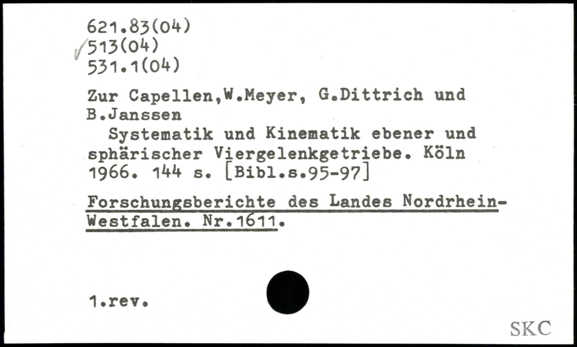 Zur Capellen,W.Meyer, G.Dittrich und B.Janssen Systematik und Kinematik ebener und sphärischer Viergelenkgetriebe.