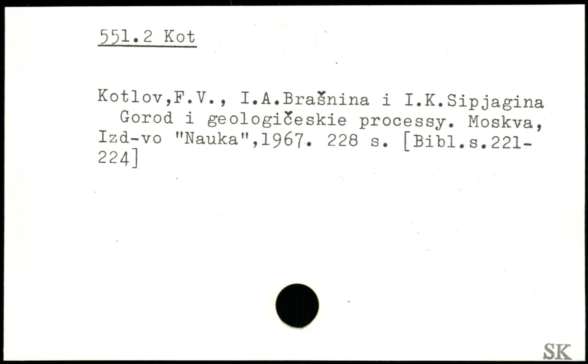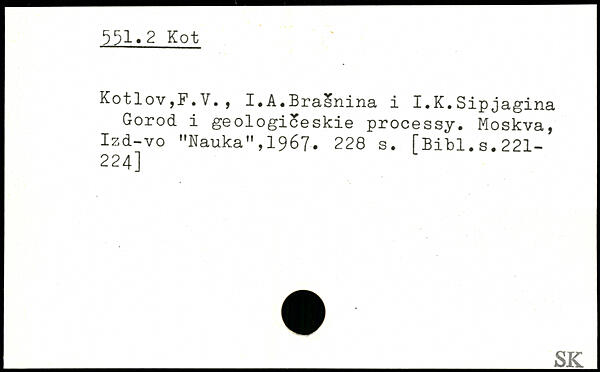Kotlov,F.V., I.A.Brasnina i I.K.Sipjagina Gorod i geologiSeskie processy. Moskva, Izd-vo MNauka",1967.