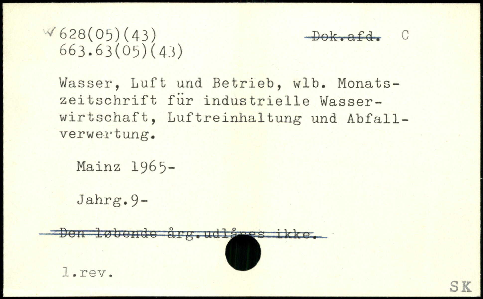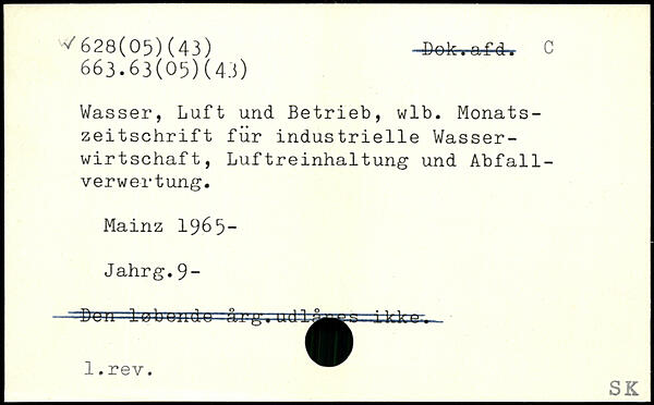 Wasser, Luft und Betrieb, wlb. Monatszeitschrift für industrielle Wasserwirtschaft, Luftreinhaltung und Abfallverwertung. Mainz 1965- Jahrg.9- —1 MllLJJIllLi '""i" l.rev.