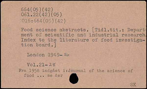 Pood science abstracts. [lidl.tit.: Depart ment of scientific and industrial research, Index to the literature of food investigation board.]