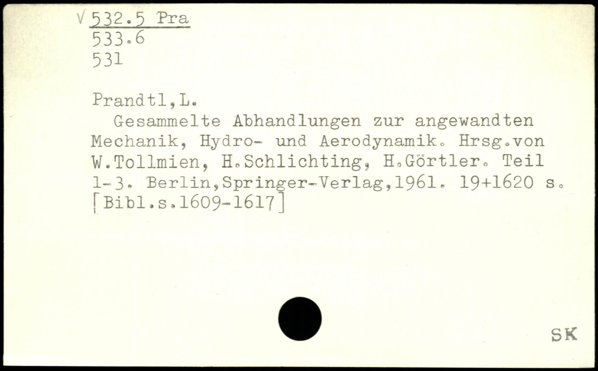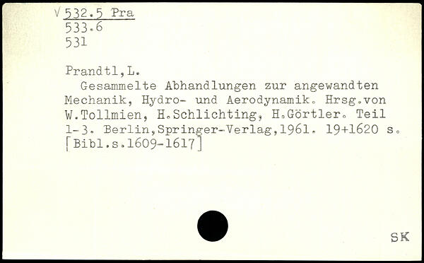 Gesammelte Abhandlungen zur angewandten Mechanik, Hydro- und Aerodynamik, Hrsg.von W.Tollmien, HoSchlichting, HnGörtler. Teil 1-3
