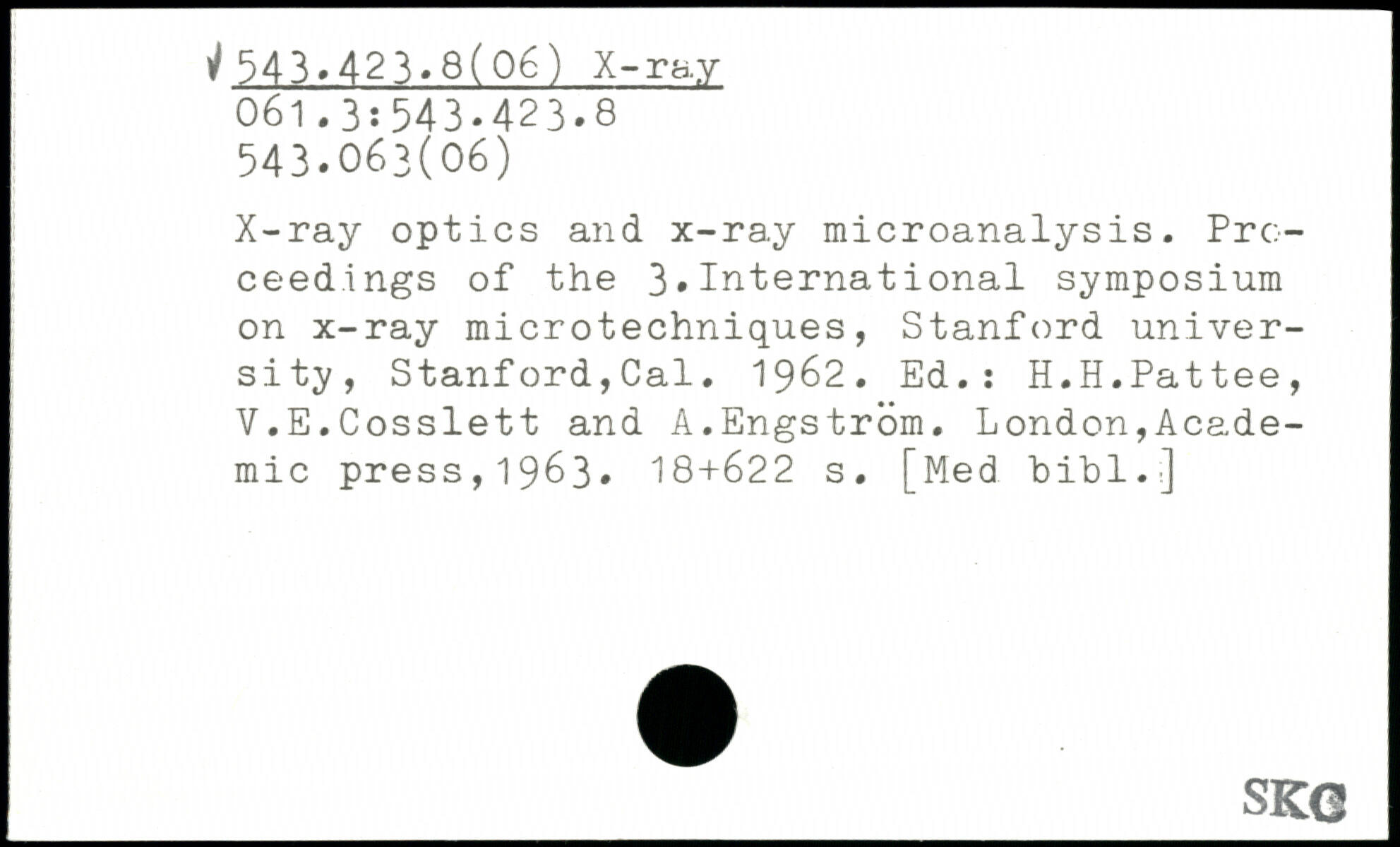 X-ray optics and x-ray microanalysis. Proceedings of the 3.International symposium on x-ray microtechniques, Stanford university, Stanford,Cal. 1962. Ed.: H.H.Pattee, V.E.Cosslett and A.Engstrom.