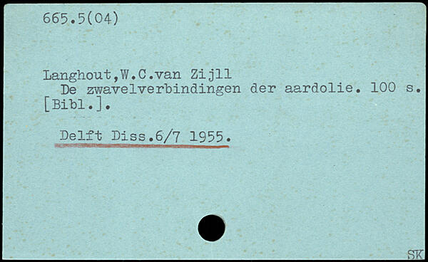 Langhout,W.C.van Zijll De zwavelverbindingen der aardolie.