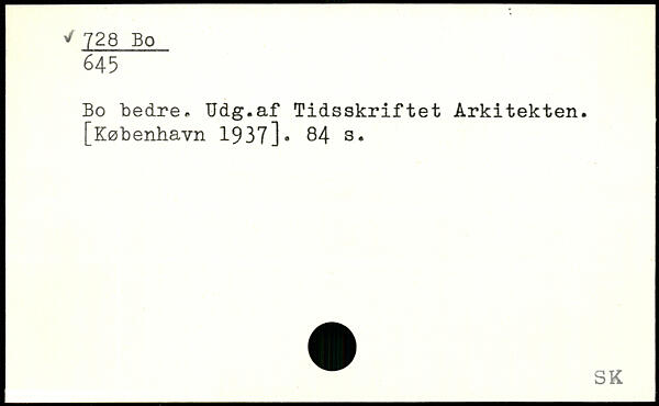Bo bedre,. Udg.af Tidsskriftet Arkitekten.