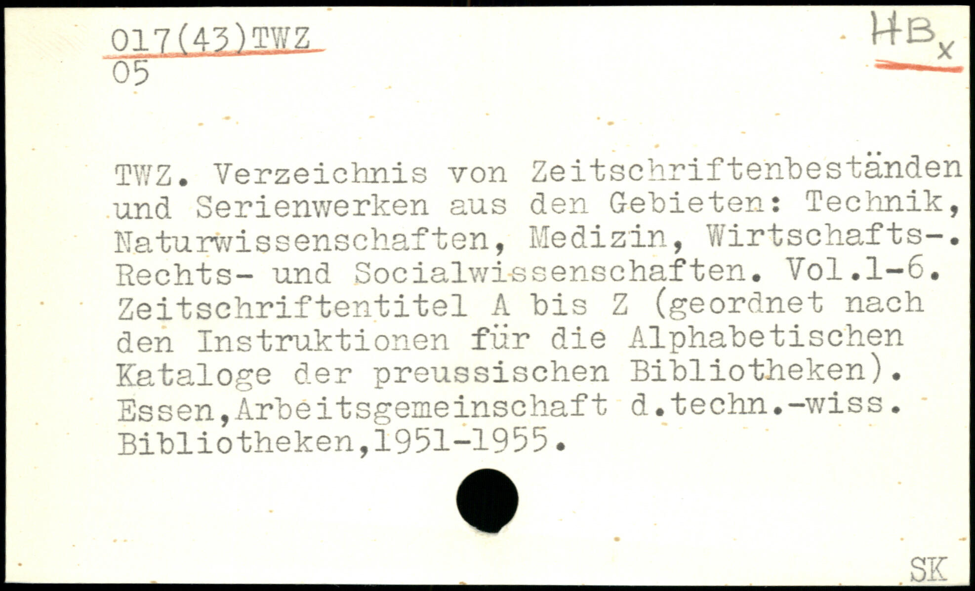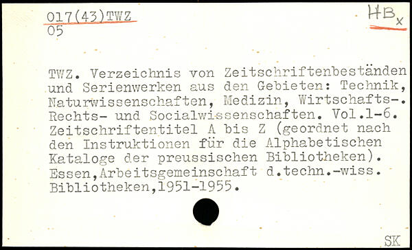 TWZ. Verzeichnis von Zeitschriftenbeständen und Serienwerken aus den Gebieten: Technik, Naturwissenschaften, Medizin, vYirtschafts—. Rechts- und Socialwissenschaften.