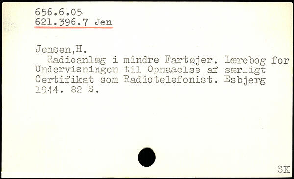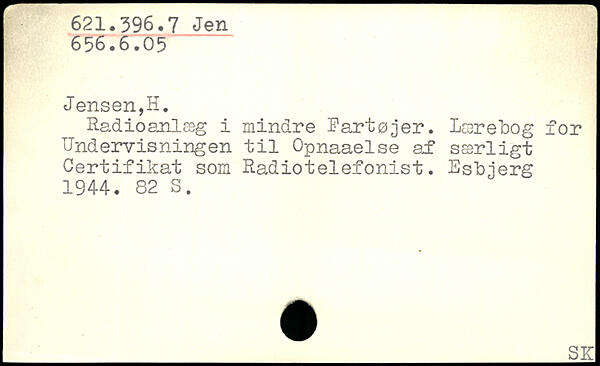 Radioanlæg i mindre Rartøjer. Lærebog for Undervisningen til Opnaaelse af særligt Certifikat som Radiotelefonist. Esbjerg 1944.