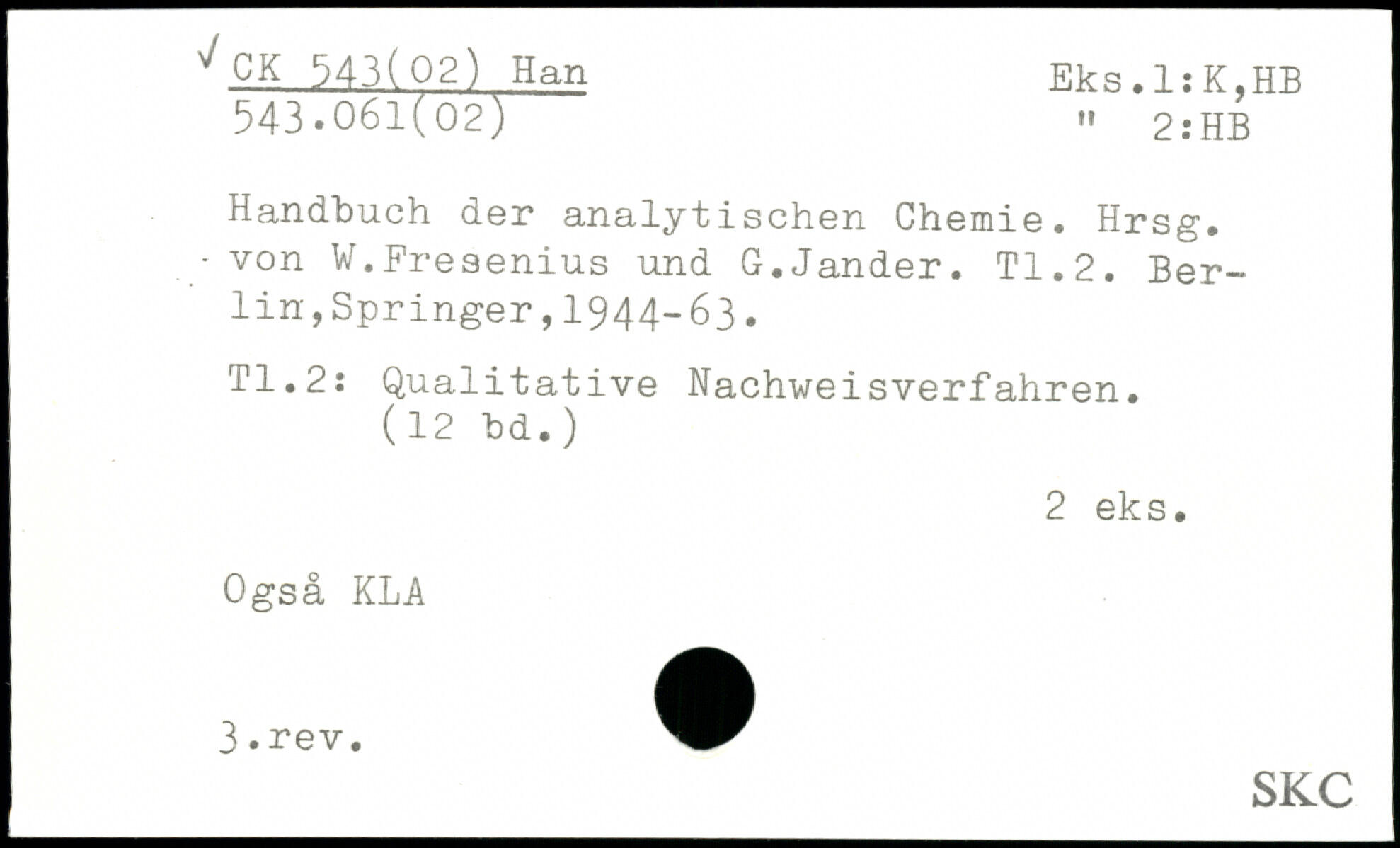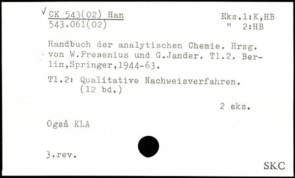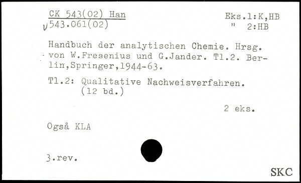 Handbuch der analytischen Chemie. Hrsg. -von W.Fresenius und G.Jander. TI.2.