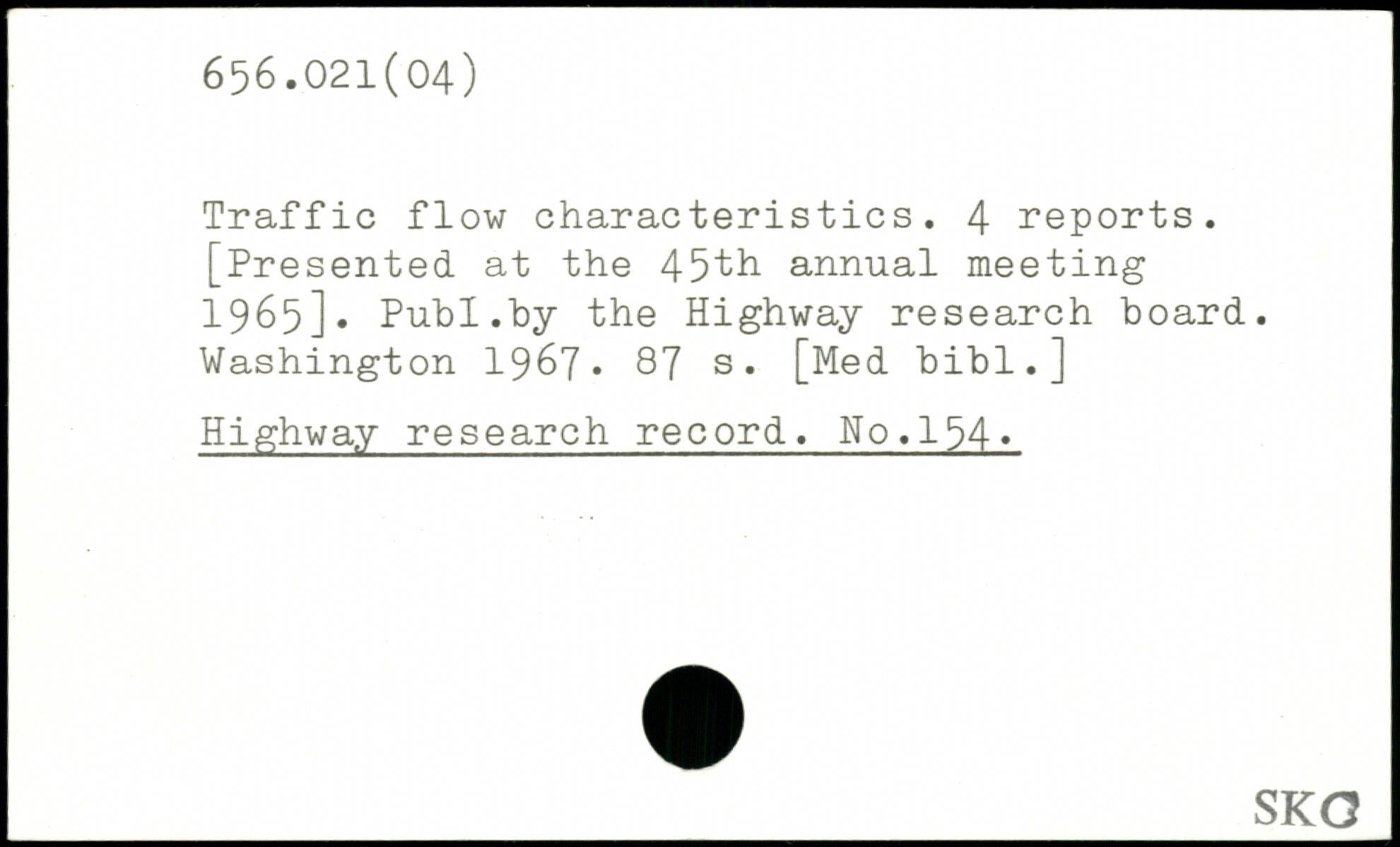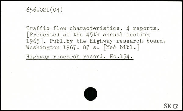Traffic flow characteristics. 4 reports. [Presented at the 45th annual meeting 1965].
