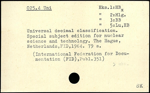 Universal decimal classification. Special subject edition for nuclear science and technology.