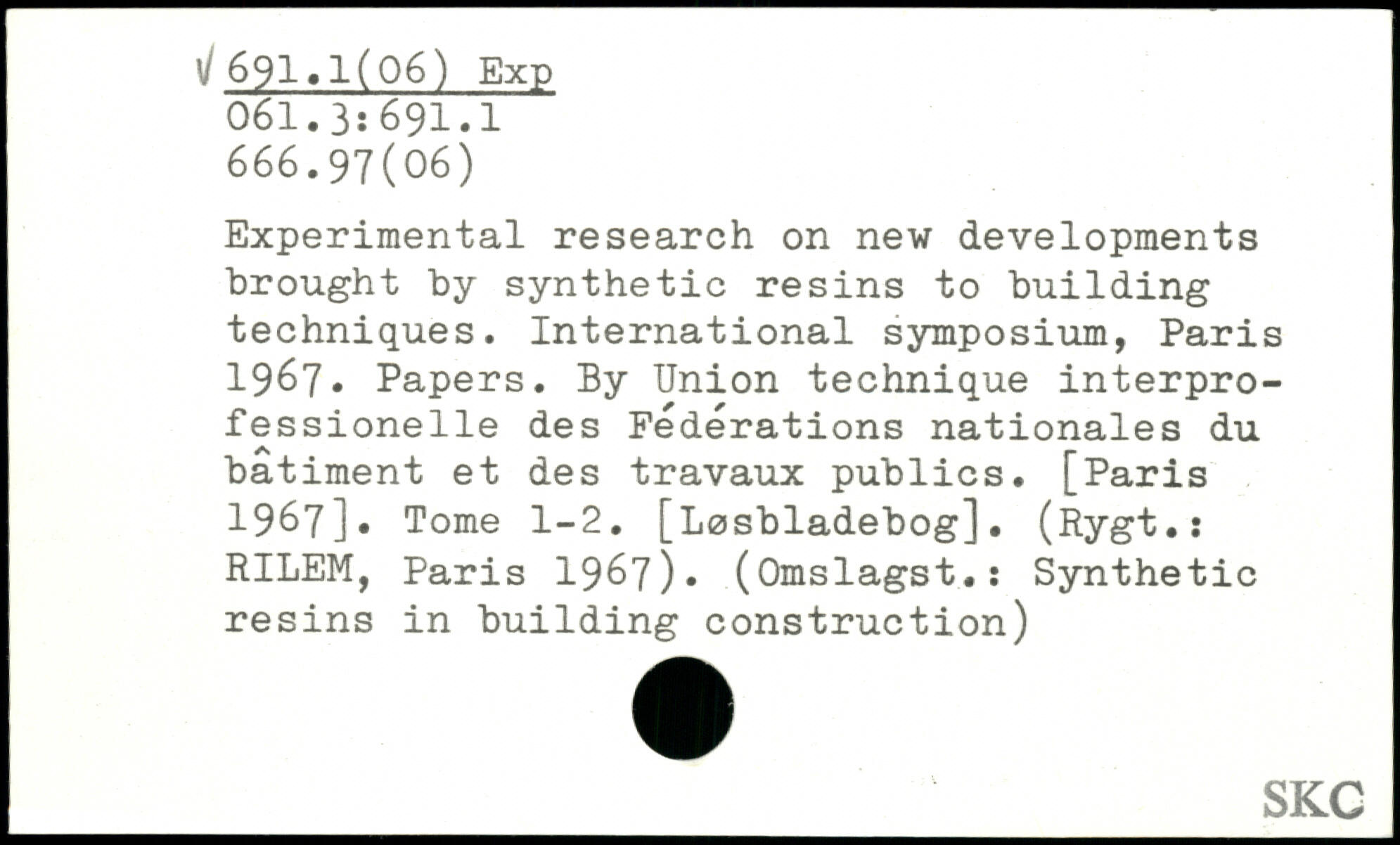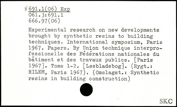 Experimental research on new developments brought by synthetic resins to building techniques. International symposium