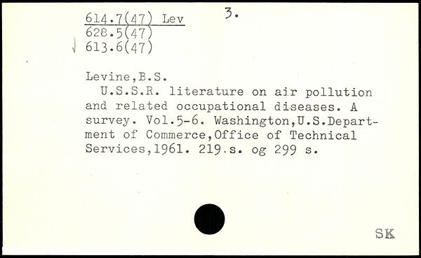 U.S.S.R. literature on air pollution and related occupational diseases. A survey.