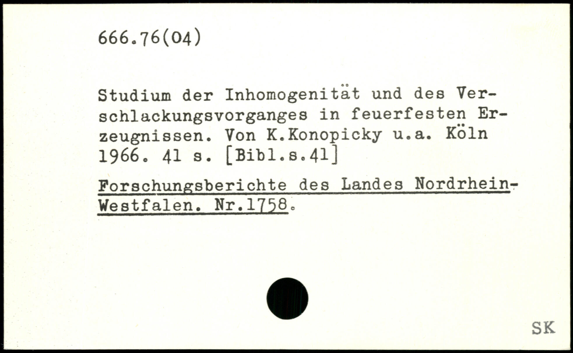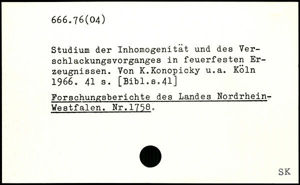 Studium der Inhomogenität und des Verschlackungsvorganges in feuerfesten Erzeugnissen. Von K.Konopicky u.a.