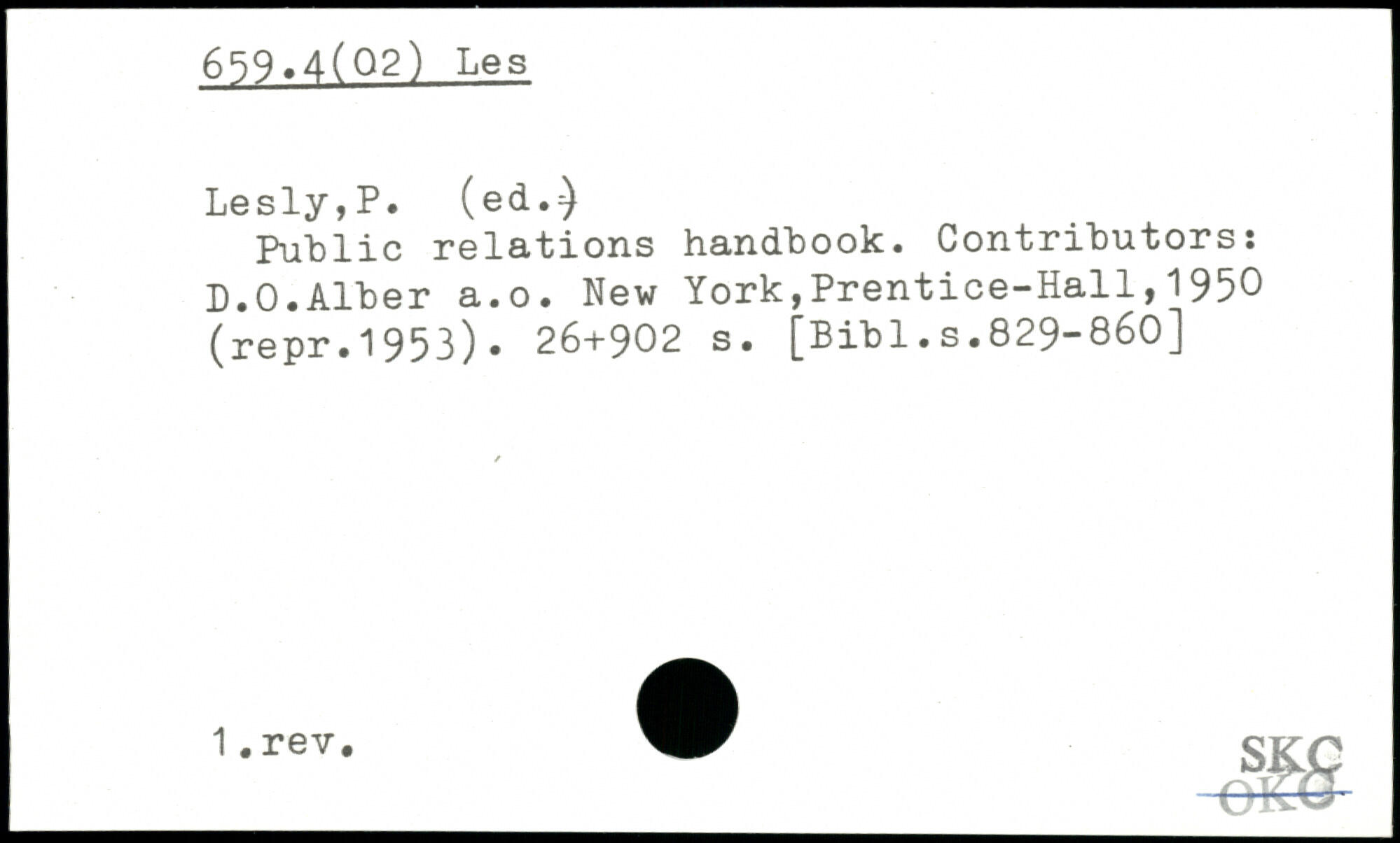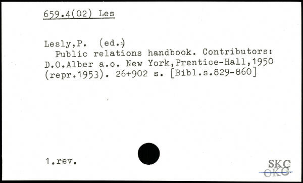 Public relations handbook. Contributors: D.O.Alber a.o.