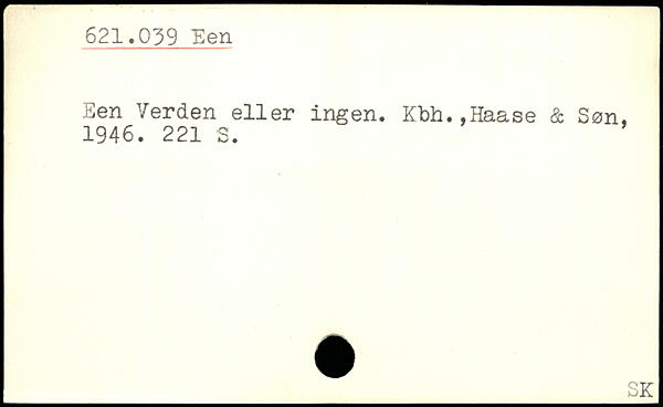 Een Verden eller ingen. Kbh..Haase & Søn, 1946.